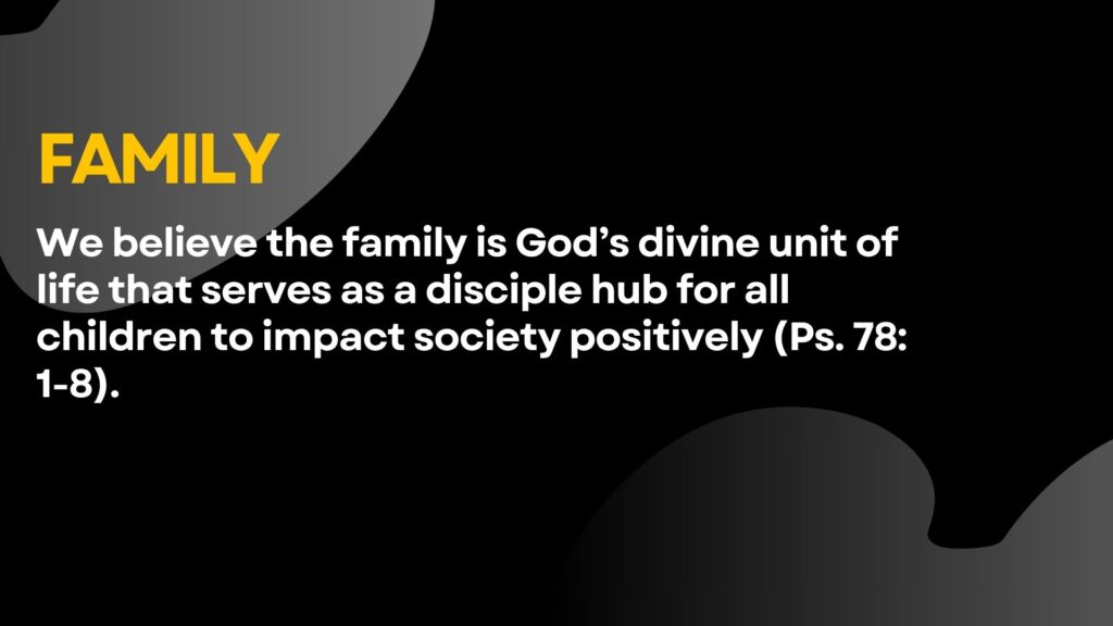 family-focused as a disciple’s hub, prayer-focused, and Holy Spirit-